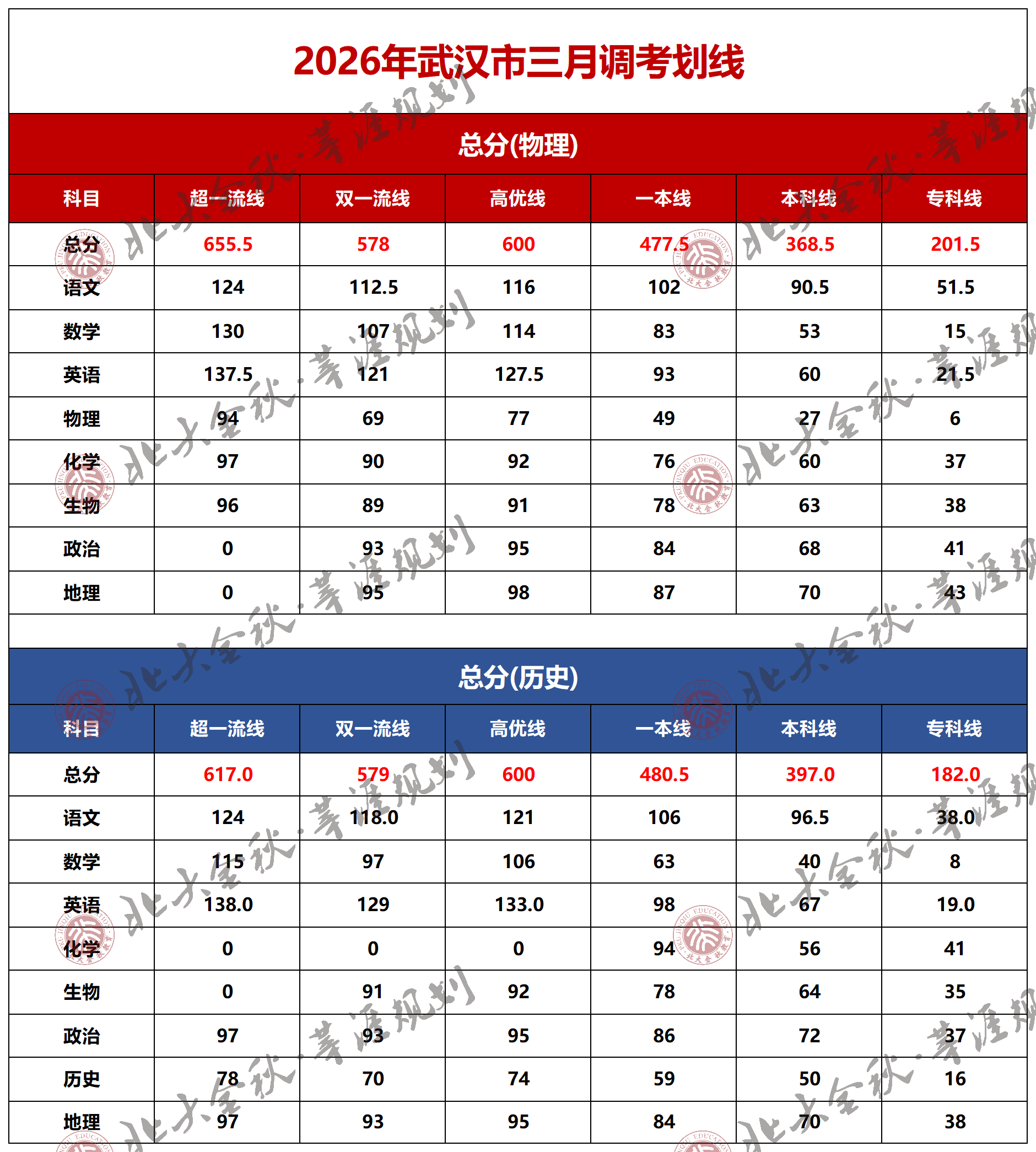 作为高考前最重要的模拟考试之一,武汉三调的划线数据直接参考武汉市及联考地区往年高考录取情况,具有较高参考价值。本次官方公布的各批次线(赋分后,含听力)如下: